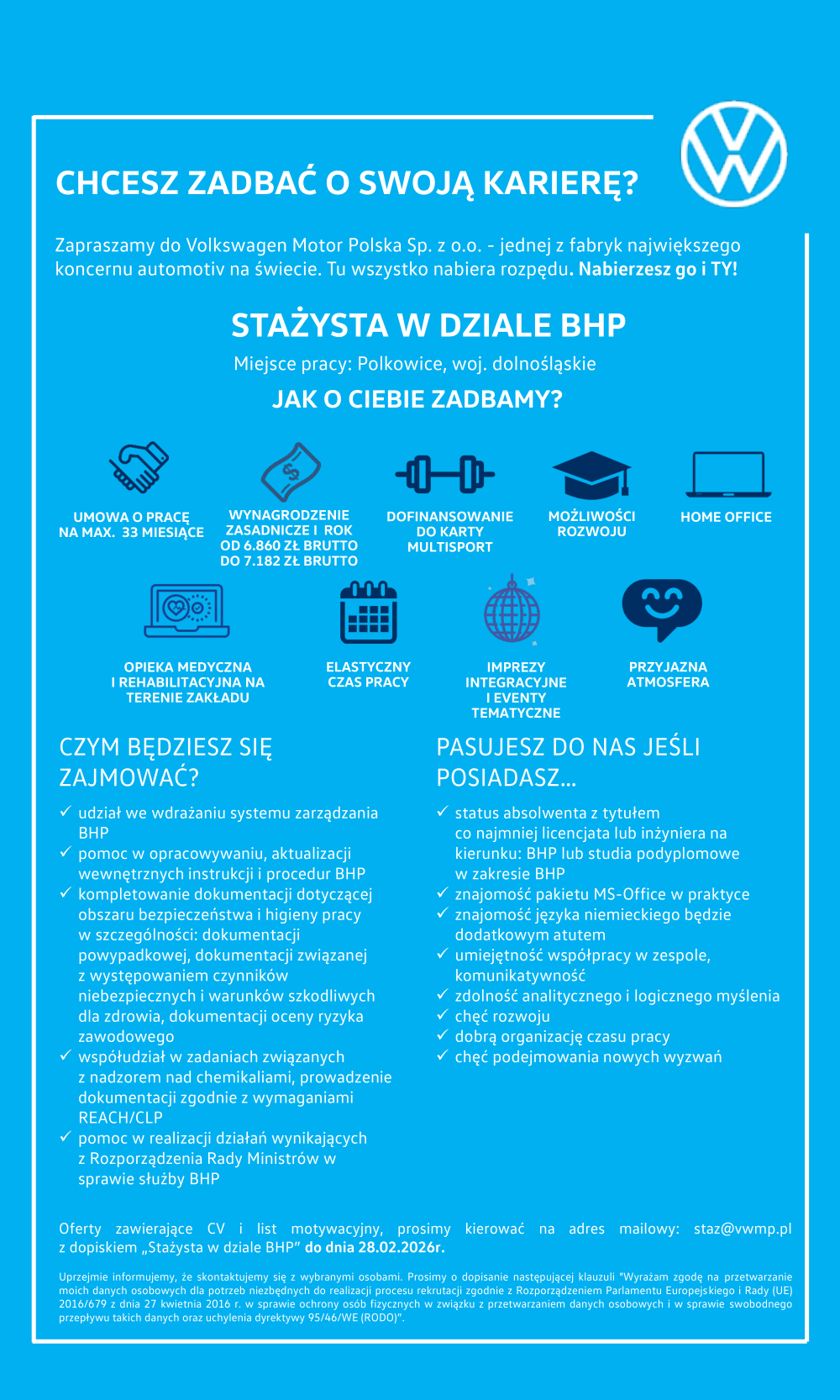 Volkswagen Motor Polska sp. z o.o. to fabryka silników diesla należąca do największego europejskiego koncernu, Volkswagen AG. Dajemy Ci szansę pracy w innowacyjnym, międzynarodowym i stabilnym przedsiębiorstwie, gdzie uczciwość i prawość to podstawowe wartości którymi się kierujemy.